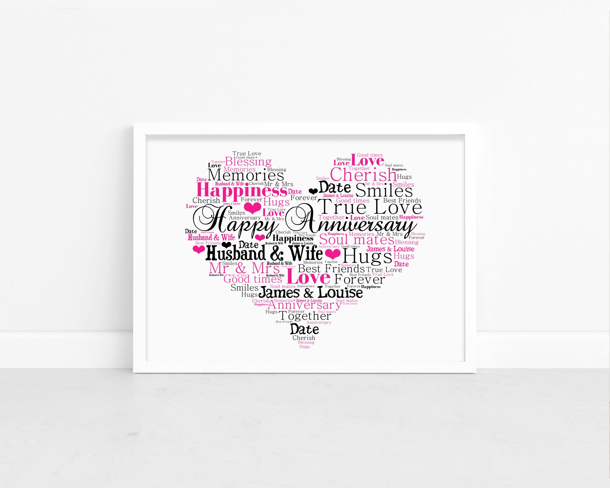 Choose your preferred print type from the drop down menu, next add your personalisation details in the box provided, including the following* (Between 15-30 words is ideal):