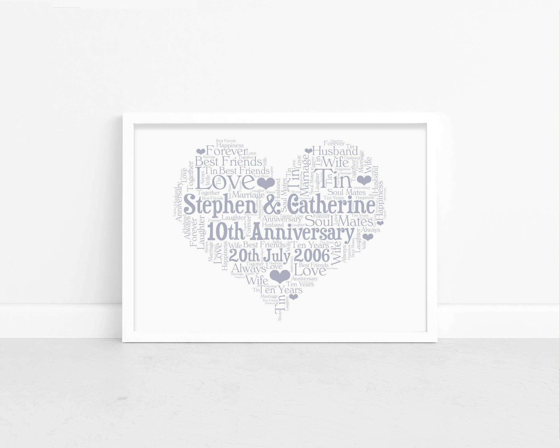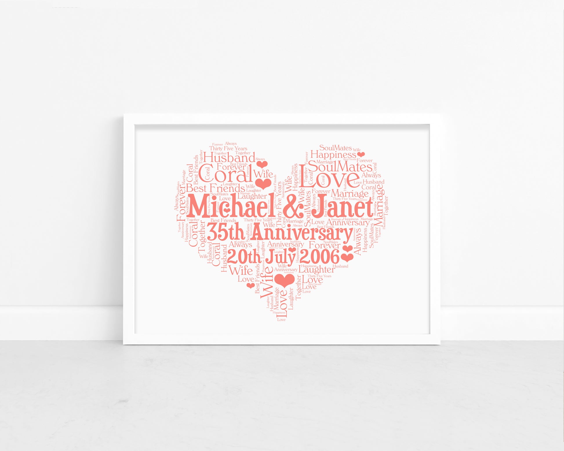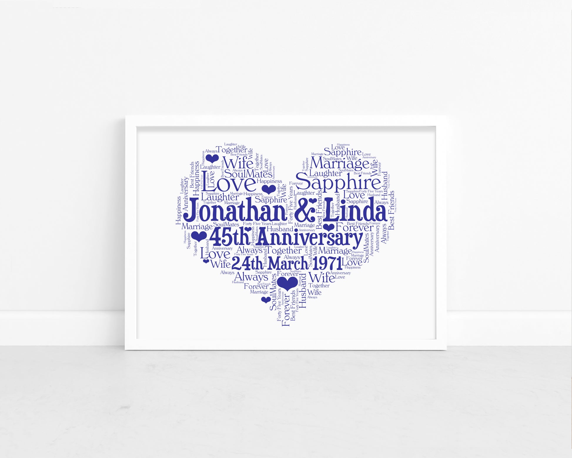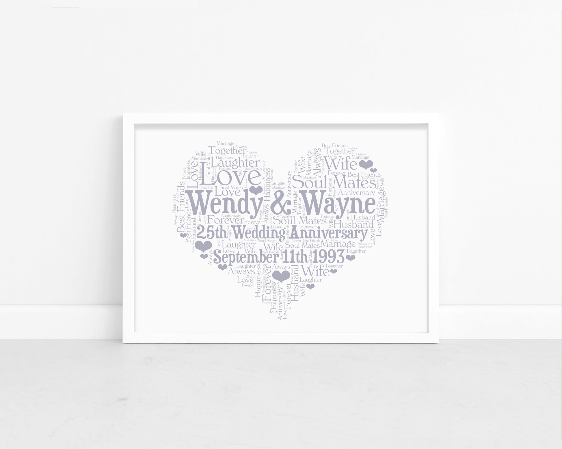 Choose your preferred print type from the drop down menu, next add your personalisation details in the box provided, including the following* (Between 15-30 words is ideal):