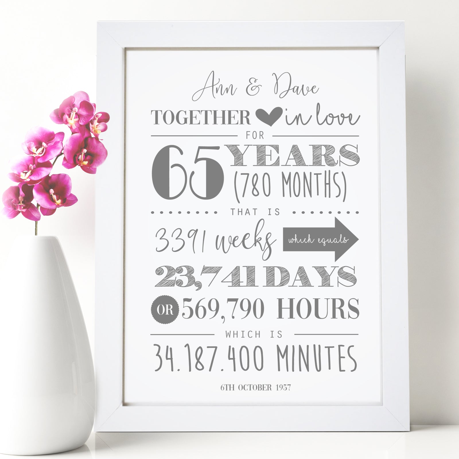 Personalised 65th Wedding Anniversary Print