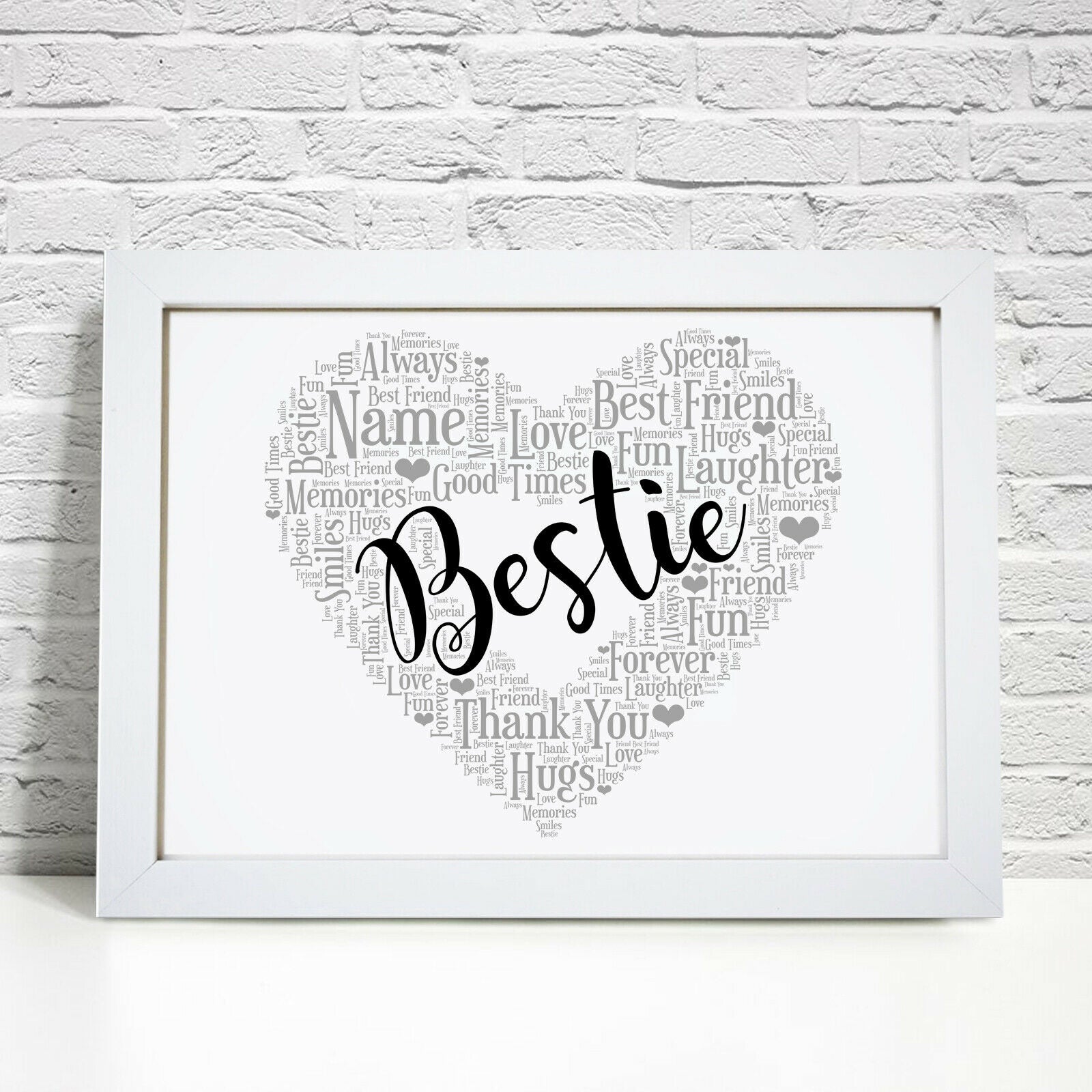 Personalised Bestie Friend Heart Word Art Print