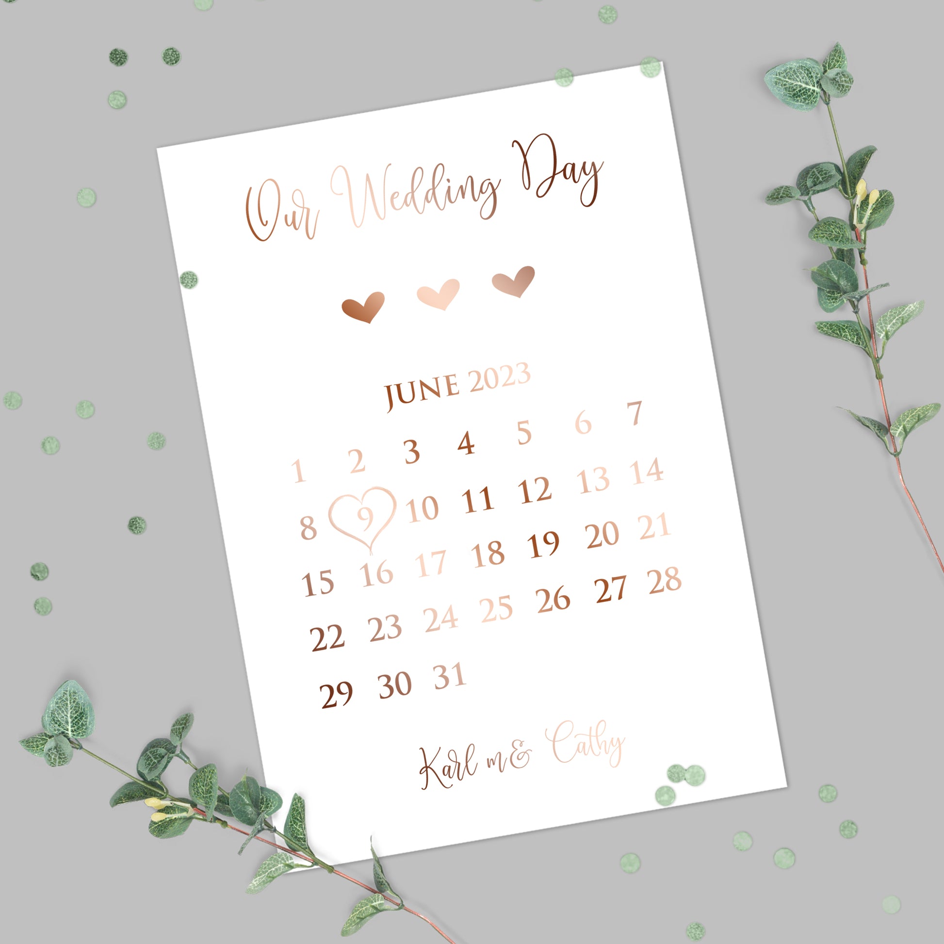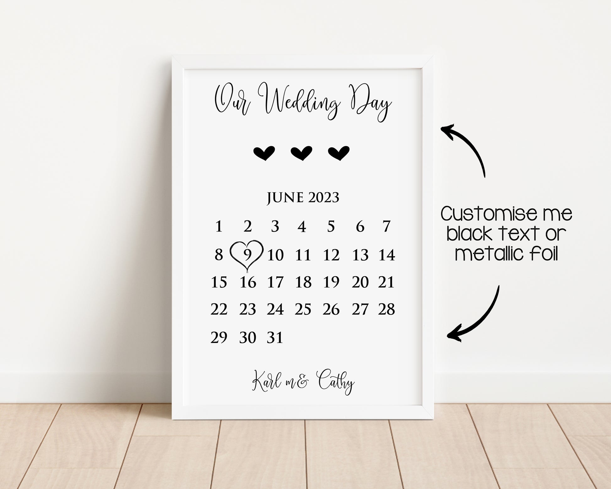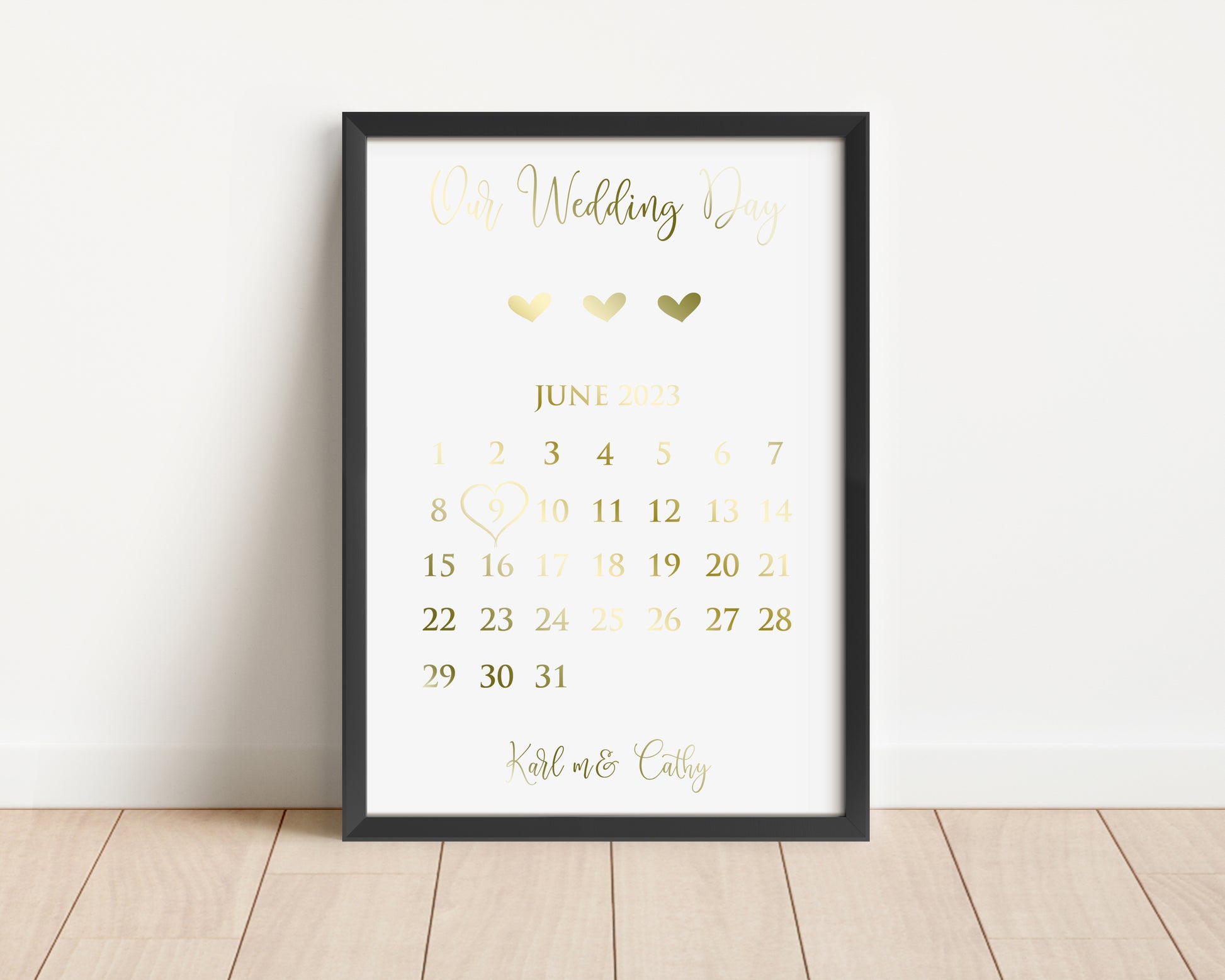 Personalised Foil Metallic Our Wedding Date Calendar Print