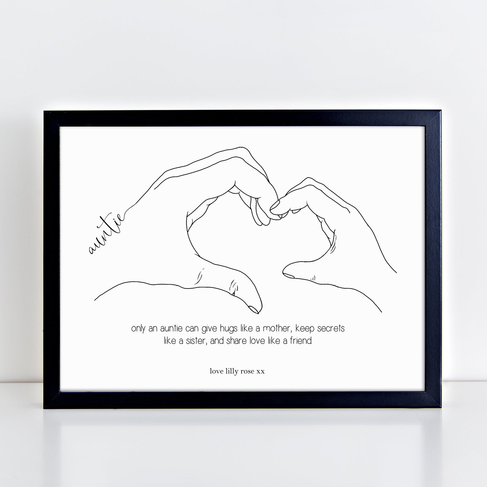 Personalised Heart Hands Aunt Poem Print