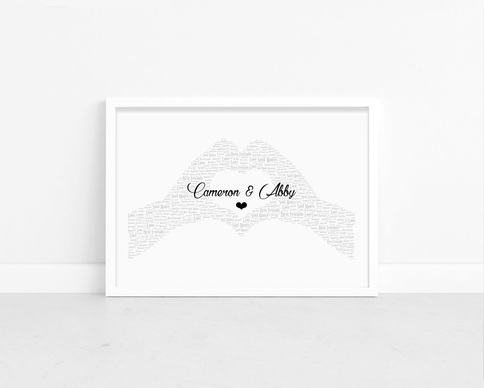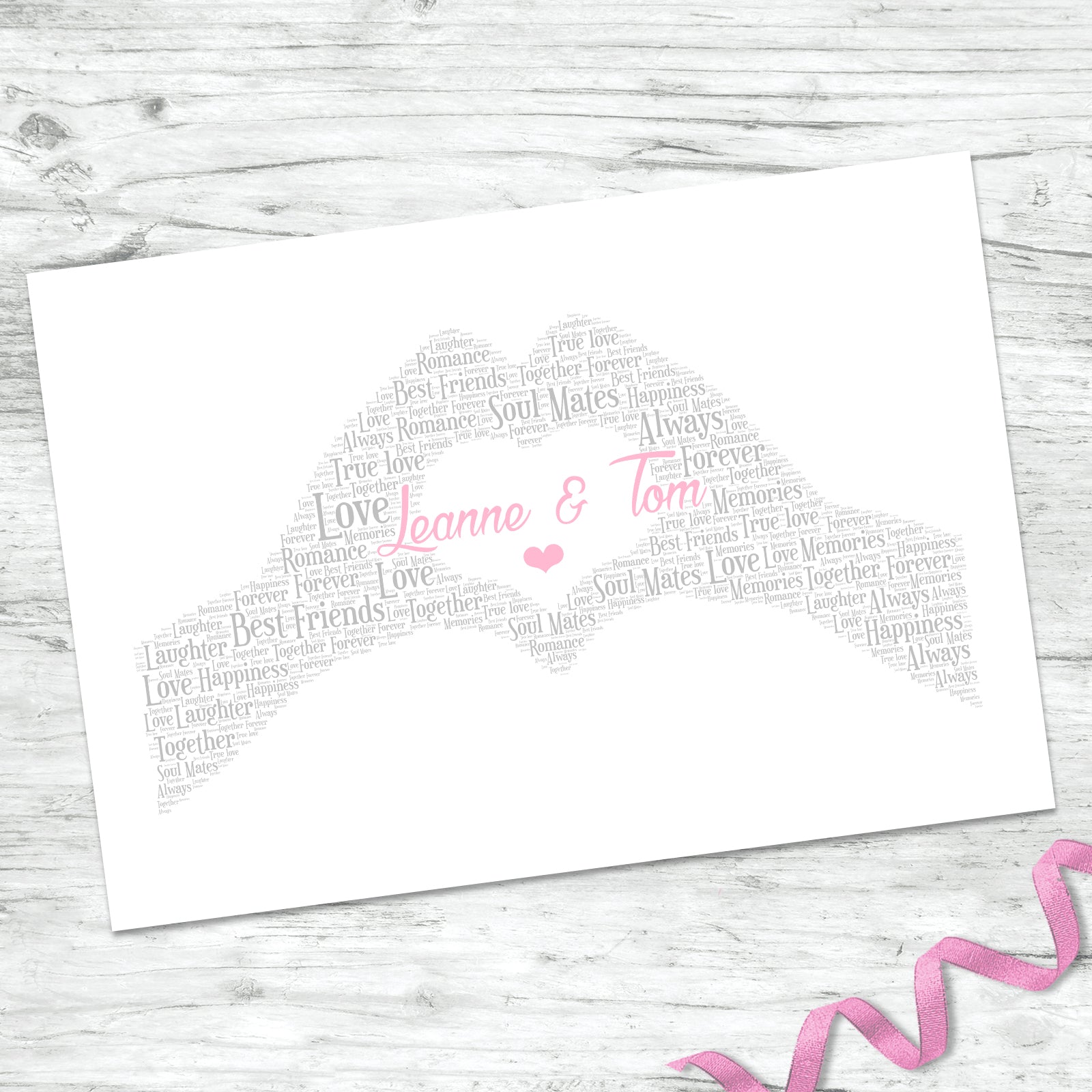 Choose your preferred print type from the drop down menu, next add your personalisation details in the box provided, including the following* (Between 15-30 words is ideal):